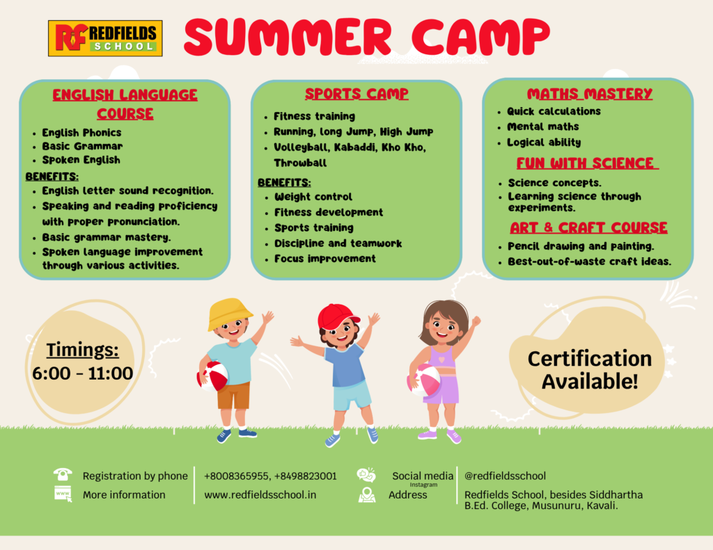 What exactly are summer camps? What are the limitations of the summer camps of many schools in Kavali? How different is Redfields School Summer Camp? Let us find out.